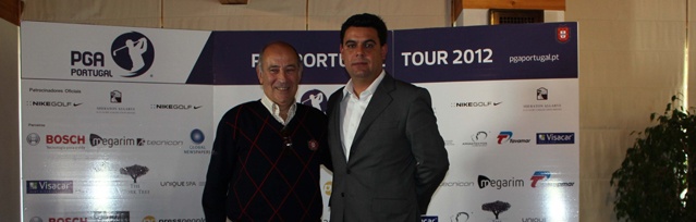 FOTO: Manuel Agrellos (presidente da Federação Portuguesa de Golfe) e José Correia (presidente da PGA de Portugal), no momento da apresentação oficial do PGA Portugal Tour 2012, cuja principal novidade foi a Taça Manuel Agrellos.
